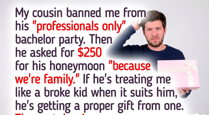 Hi Marcus, thanks for sharing your story! Look, expecting a $250 contribution from someone just starting their career — especially after excluding them from the celebration — was a pretty bold move on your cousin’s part. You had every right to set boundaries and give what you could actually afford (even if that gift was… creatively chaotic).