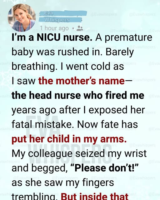She looked smaller than I remembered. No sharp authority in her posture now—just a mother gripping the incubator rail, eyes red from crying. She asked careful questions. She thanked every nurse.