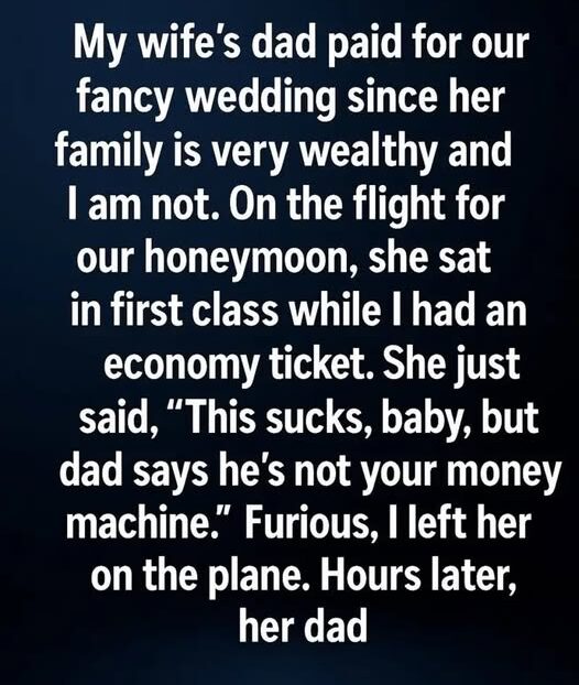 My wife’s dad paid for our fancy wedding since her family is very wealthy and I am not. On the flight for our honeymoon, she sat in first class while I had an economy ticket. At first, I assumed it was a simple mistake or a last-minute booking issue.