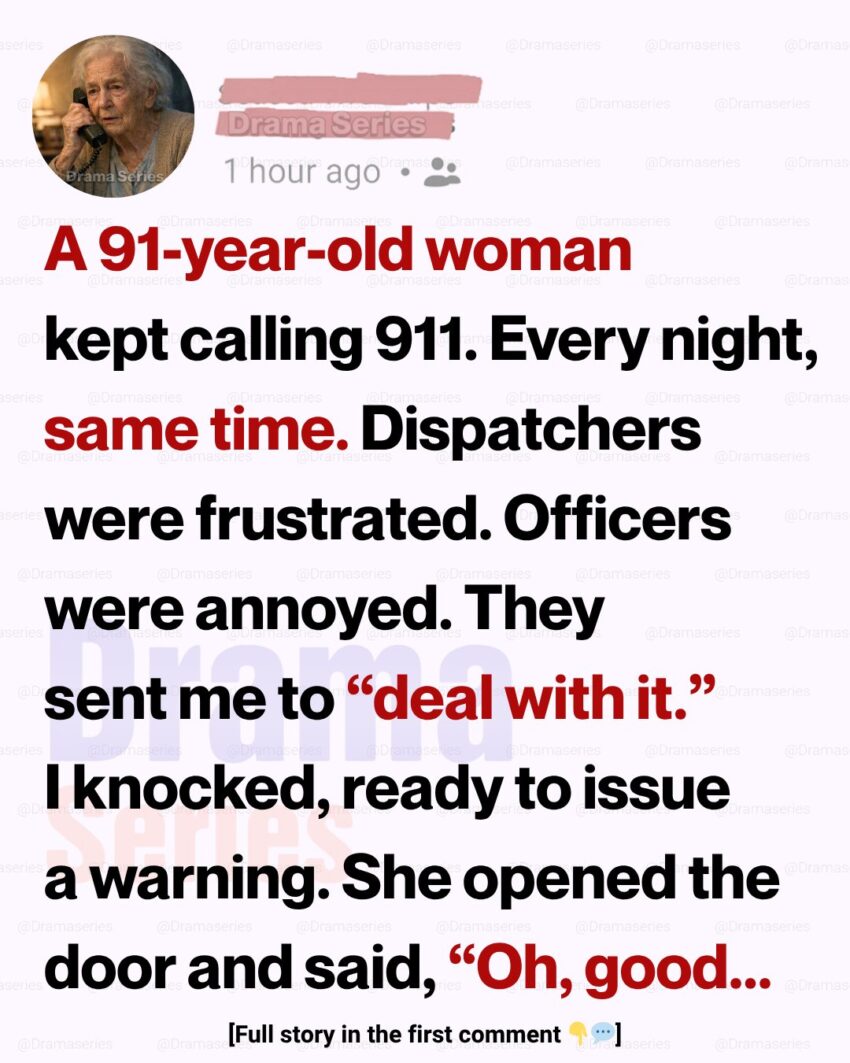 At first, dispatch thought it was confusion. Then maybe dementia. By the third week, it became a nuisance. Officers rolled their eyes when her name popped up on the screen. Someone even taped a note above the radio: “91-year-old repeat caller. Non-emergency. Handle and clear.”